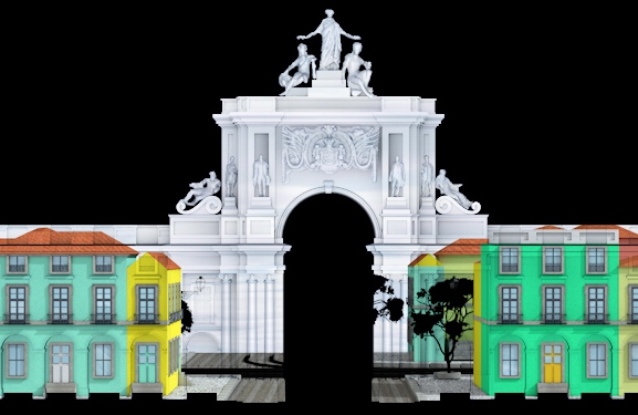 A projecção será acompanhada por música e abrange toda a extensão da fachada onde se situa o Arco da Rua Augusta, com histórias paralelas que se vão cruzando e que nos levam desde os elementos do passado até às novas tecnologias e empreendedorismo do presente, em múltiplas caras com que Lisboa nos brinda.