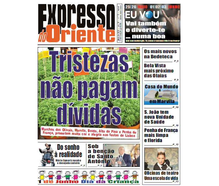 Já saiu a nova edição do EXPRESSO do Oriente. Conheça os casais de Santo António da zona Oriental de Lisboa, saiba quais os temas que as marchas vão levar até à Avenida e fique a conhecer as Oficinas de Teatro da Junta de Freguesia da Penha de França. Fique a par de tudo isto e muito mais AQUI