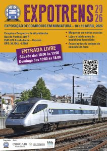 A EXPOTRENS 2026 – Exposição de Comboios em Miniatura, terá lugar nos próximos dias 18 e 19 de Abril de 2026 no pavilhão do Complexo Desportivo de Alcabideche.