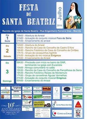 Para sábado, dia 2 de Julho, estão previstas as actuações do Rancho da Casa do Concelho de Castro Daire, do Rancho Folclórico da Casa do Concelho de Cinfães, do Grupo de Cavaquinhos AgiArte e do trio musical Enigmus, para um dia em cheio que começa pelas 14 horas e só termina de madrugada.