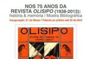 A mostra “NOS 75 ANOS DA REVISTA OLISIPO (1938-2013): história & memória” será inaugurada no dia 21 de Março e estará em exposição até ao dia 30 de Abril, no átrio e escadaria da Hemeroteca Municipal de Lisboa.