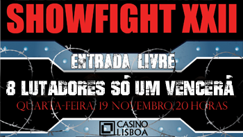 O Auditório dos Oceanos do Casino Lisboa acolhe, no próximo dia 19 de Novembro, o “Showfight XXII”, um importante evento do MMA Internacional, que conta com uma série de combates a não perder.