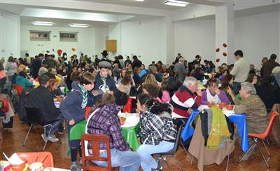 Lá fora abate-se um dilúvio e o vento não dá tréguas… mas dentro do salão paroquial não se podia estar melhor! As bifanas, o chouriço assado, os bolos e outras sobremesas são apenas os acompanhantes: a verdadeira rainha do dia é a sopa. Ou as sopas, já que há mais de 20 à disposição do freguês!
