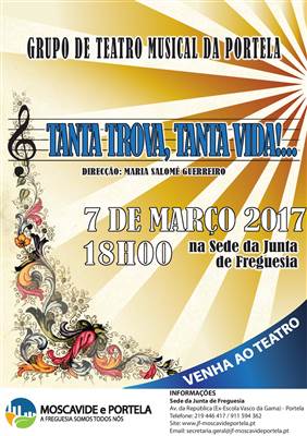 O Grupo de Teatro Musical da Portela actua na tarde desta terça-feira, dia 7 de Março, na sede da sua Junta de Freguesia.